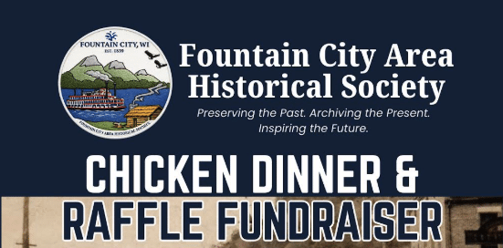 Chicken Q and Raffle Fundraiser for the Fountain City Historical Society on March 8th, 10:30am until gone. Sponsored by JP’s Kitchen & Pub.